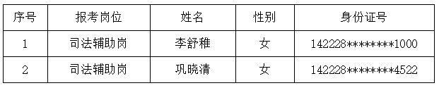 忻州市靜樂縣人民法院司法輔助人員招聘擬錄用人員及儲備人員公示